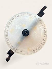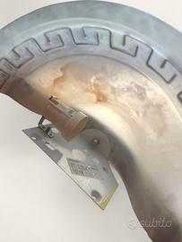 Elegante set coordinato di illuminazione vintage composto da: ✔️ 1 lampadario a sospensione ✔️ 2 applique da parete Ideale per arredare ambienti come soggiorni, ingressi, corridoi o camere da letto. Ogni pezzo è in ferro battuto nero/antracite, con volute e riccioli decorativi tipici dello stile classico. I diffusori in vetro satinato bianco opalescente presentano un raffinato bordo con motivo greco a meandro. ✨ Il lampadario presenta un elegante decoro a forma di fiore alla base della sospensione in ferro. 📐 Misure approssimative: • Applique: larghezza max circa 40 cm • Lampadario: lunghezza totale circa 46 cm | diametro coppa di vetro: 29 cm → circonferenza circa 91 cm 💡 Dettagli tecnici (visibili anche in foto): • Marca: ECOLAMP • Attacco: E27 • Max: 1x 60W – 230V • Classe energetica: A++–E • Conformità CE 📦 Condizioni: Ottimo stato vintage. Vetro integro, ferro ben conservato. Piccole imperfezioni dovute all’età (come leggere tracce di ossidazione o polvere nella coppa del lampadario) facilmente rimovibili con una semplice pulizia. Visiona attentamente le foto per i dettagli. 📩 Per info o altre foto, scrivimi pure! Rispondo velocemente. — Parole chiave: lampadario vintage, applique ferro battuto, illuminazione classica, stile greco, vetro satinato, meandro greco, set lampade vintage, lampadario con applique, ferro battuto nero, arredo classico, applique parete, vintage lighting set, profaniere Keywords (English): vintage chandelier, wall sconces, wrought iron lamp, satin glass light, greek key design, classic decor, retro light fixture, matching lighting set, antique style lamps, country home lighting