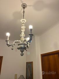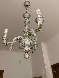 Vendo lampadario firmato Capodimonte con decorazioni fatte a mano fiori e 3 luci.