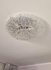 Vendo elegante set coordinato di illuminazione composto da: • 2 lampadari a sospensione diametro 50 cm • 2 plafoniere diametro 40 cm • 1 applique da parete misura 40 x 18 cm Realizzati in vetro artistico trasparente lavorato a mano con struttura in metallo satinato. Design moderno ed elegante, perfetti per soggiorno, sala da pranzo, ingresso o camera. Produzione italiana di qualità, acquistati presso negozio specializzato di illuminazione. Ottime condizioni. Vendibili anche separatamente. Prezzi: • sospensione convessa €200 • sospensione rovesciata €150 • plafoniere €100 cad. • applique €50 • intero set €600 trattabili + 1 plafoniera diametro 20 in omaggio Solo interessati.