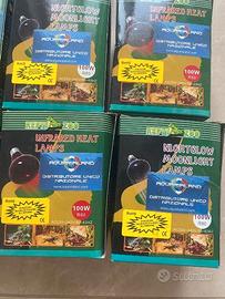 Set di 14 Lampade Riscaldanti a Raggi Infrarossi per rettili (serpenti, tartarughe, iguana ecc.), pulcini e cuccioli in generale. Emette onde calde nell’arco di 24 ore per mantenere il calore del terrario a temperatura costante. Ideale per il normale ciclo delle attività e per la visione notturna. 10 lampade E27 da 100W e 4 da 75W. Trattasi di scorte mai utilizzate.