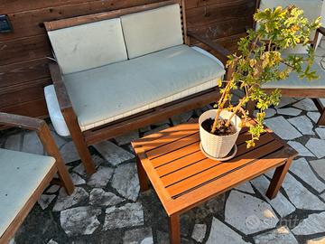 Set legno giardino tavolino divanetto e poltrone
