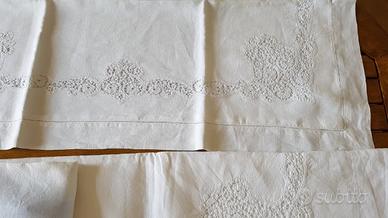 Set lenzuola in lino ricamate a tombolo . Nuove. ritiro in loco. Disponibili anche altri set anche antichi.