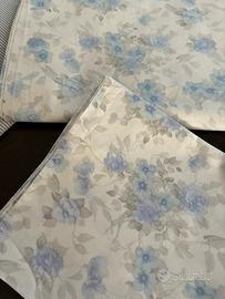 Completo lenzuola per letto singolo, composto da lenzuolo sotto con angoli (rigato) lenzuolo piano e federa (fiorato).