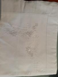Cedo in blocco set composto da lenzuolo sopra e 2 federe in cotone di cui 4 ricamati a mano e 2 ricamati a macchina. Accetto offerte