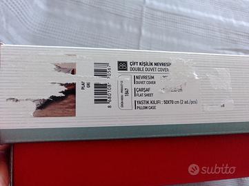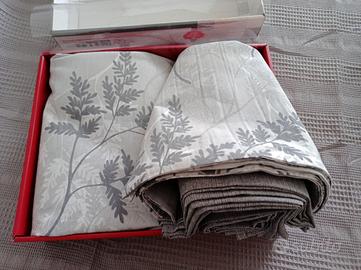 set lenzuola matrimoniali in puro cotone, composto da 4 federe, lenzuolo sopra a sacco e lenzuolo sotto senza elastico ( si adatta a qualsiasi altezza di materasso) colore grigio con foglie più scure e più chiare,ottima qualità,made in Turchia