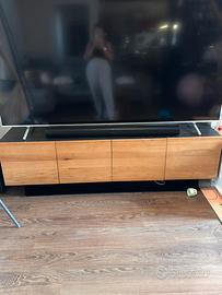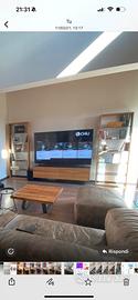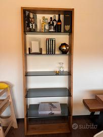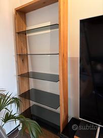 Vendo per trasferimento set parete TV 2 librerie 1 porta tv legno Librerie : in cerro massiccio e ripiani in vetro fume 85x37 h210 Porta tv : in cerro massiccio con 4 porte e piede in metallo 188x45 h55 Marchio Oliver B.