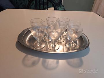 set da liquore vintage in finissimo vetro con lavorazione fiore vetro satinato. il set non comprende il vassoio acciaio