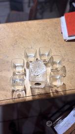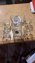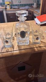 Elegante set da liquore o whisky in pregiato cristallo, composto da una caraffa con tappo lavorato e 6 bicchieri coordinati.
