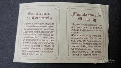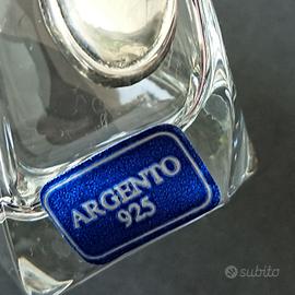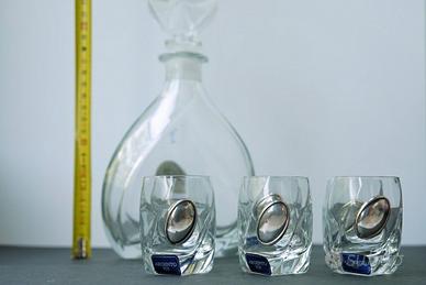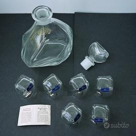 Set liquore in cristallo e argento 925 composto da una bottiglia con tappo e 6 bicchieri. Realizzato a mano da Argenti, made in Italy. Solo ritiro a Milano e nei weekend a Genova.
