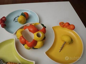 set composto da 3 ampie ciotoline, 1 cucchiaio, 1 centrotavola con apribottiglie