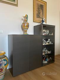 Set di due mobili da soggiorno, composti da madia/credenza e vetrinetta del marchio di arredamento San Giacomo.