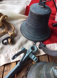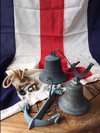 Due campane in metallo, una è perfetta, alla seconda si è staccato il batacchio e bisogna trovare un perno da avvitare.