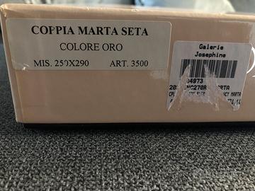 Vendo set completo di copriletto, lenzuolo e 2 federe color oro in raso/seta. Presente certificato di garanzia. Prodotto nuovo. Per info contattatemi.