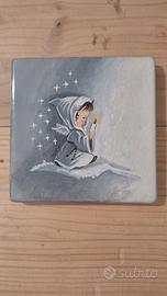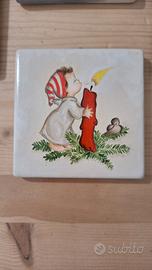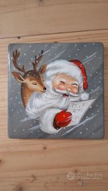 Set di mattonelle 10x10 cm in ceramica dipinte a mano, con gancio per essere appeso. Ideali come regalo di natale o per decorare la casa.