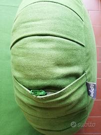 Set composto da cuscino imbottito in kapok e tappetino "Zabuton", imbottito con falde di cotone naturale, sfoderabile, cm 80 x 80. Colore verde oliva. Rivestimento cuscino e zabuton in cotone resistente 100%. Solo ritiro in zona.