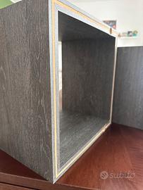 Vendo il set di due cubi grigi per parete, utilizzati come mensole. Vengo con i propri tasselli. Condizioni ottime con una piccola ammaccatura sistemata.