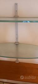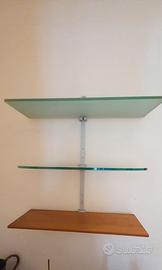 Set 3 mensole di design 2 piani in cristallo + 1 in vetro + reggimensole in acciaio zincato