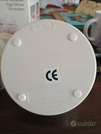 Vendo per inutilizzo Mini robot da cucina 4 in 1: - estrattore di succo - apri bottiglia - battitore di uova - trituratore Funziona con quattro batterie, Misura: diametro cm 12, NUOVO, mai utilizzato