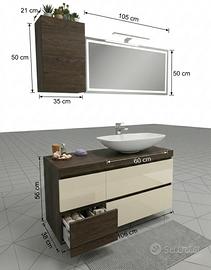 • Specchio: Grande specchio rettangolare coordinato (105x50 cm) con illuminazione superiore inclusa.