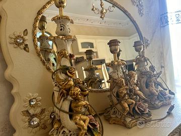 •Coppia di lampade decorative con putti e fiori dipinti a mano
