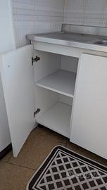 - Mobile Sottolavello: Struttura a 3 ante completa di lavello in acciaio inox a due vasche e gocciolatoio.