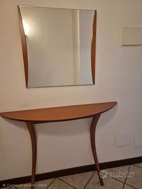 Vendo elegante set da ingresso firmato Calligaris, composto da consolle a mezzaluna e specchiera coordinata con profili in legno.