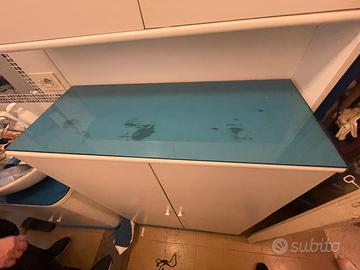 Vendesi pratico e luminoso set di mobili da bagno componibili, caratterizzati da un design moderno e pulito. Il set è perfettamente coordinato grazie ai dettagli in vetro azzurro presenti sui due mobili base. Dettagli e Misure (Larghezza x Profondità x Altezza): 1. Base Portascarpe con Vetro Azzurro: * Misure: 120 x 33 x 85 cm • Nota: Il legno della struttura, nella parte coperta dal vetro, presenta alcune macchie dovute all'uso (come da foto). 2. Mobile Sotto-Lavabo con Vetro Azzurro: * Misure: 62 x 40 x 71 cm • Incluso nel prezzo: Lavabo in ceramica bianca coordinato. 3. Mobile Pensile Bianco (superiore): * Misure: 60 x 14,5 x 88 cm • Ideale per essere posizionato sopra la scarpiera per ottimizzare lo spazio. Stato: I mobili sono strutturalmente molto solidi e i vetri sono integri. Il set è in buone condizioni generali e pronto per essere installato. Prezzo: 120€ 📍 Ritiro: A carico dell'acquirente a Roma.