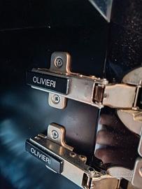 Set mobili camera da letto marchio Olivieri mobili (linea anni '80-'90) in legno laccato lucido nero composto da due comodini a due cassetti e comò a quattro cassetti e anta laterale con specchiera.