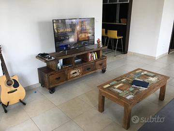 Vendo elegante set di mobili in legno massello in stile etnico/industrial, acquistati a Dubai e di origine artigianale indiana. I mobili sono realizzati in legno riciclato, con finiture vissute e dettagli unici che rendono ogni pezzo originale e non replicabile. Il set è composto da: •Madia TV con 4 cassettoni e ruote in stile industriale •Credenza con ante e cassetti in legno multicolor (effetto patchwork) •Tavolino abbinato Perfetti per arredare un soggiorno con carattere, in stile boho, industrial o etnico contemporaneo. I mobili presentano naturali segni del tempo che ne valorizzano l’autenticità. Dimensioni: Madia con ruote: 173 x 40 x H 73 cm Credenza: 120 x 40 x H 90 cm Tavolino: 120,5 x 61 x H 46 cm Acquistati nel 2019 Struttura solida e resistente Vendibili anche separatamente Prezzi: •Madia con ruote: €400 •Credenza/buffet table: €400 •Tavolino: €150 Prezzo trattabile se acquistati insieme Ritiro a mano a Milano Possibilità di visionarli senza impegno
