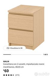 Cassettiera con 2 cassetti, impiallacciato rovere mord bianco, 40x55 cm