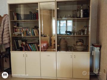 •Vetrina a tutta parete con ante in vetro, completa di ripiani interni, ideale per libri, stoviglie e oggettistica