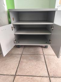 Vendo in blocco due mobili coordinati colore grigio chiaro, ideali per ufficio, studio o casa.