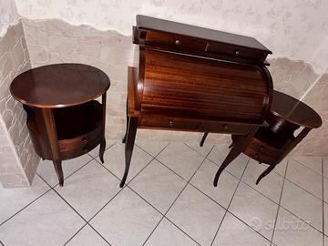 Vendo set completo di mobili vintage in legno composto da: – Secrétaire a rullo (scrivania) – 2 comodini – Cassettiera alta Mobili in buone condizioni, struttura solida e ben tenuti. Presentano normali segni del tempo. Stile classico, ideali per arredamento vintage. 📏 Misure disponibili su richiesta 🚚 Smontaggio e trasporto a carico dell’acquirente 📍 Ritiro in zona Chiaiano NA