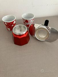 Set Mini Express Colour Cuore by Bialetti, composta da una caffettiera moka 2 tazze in alluminio e 2 bicchierini in ceramica. Le tazzine verranno riscaldate dalla speciale piastra di appoggio in alluminio. Senza scatola, ma mai utilizzata come potete vedere dalle foto.