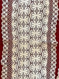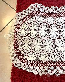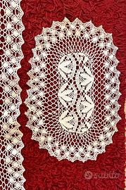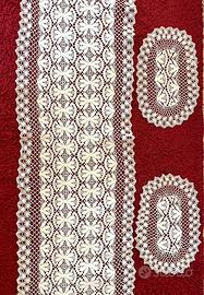 SET DI N. 3 CENTRI ANTICHI COLOR GREZZO - LAVORAZIONE A TOMBOLO - UN CENTRO TAVOLA OVALE E N. 2 CENTRI PICCOLI SEMPRE OVALI - IL COMPLETO E' STATO SBIANCATO DALLE MACCHIE DI BAULE - I DUE CENTRI PIU' PICCOLI SI SONO SBIANCATI MENO E RISULTANO CON UNA TONALITA'