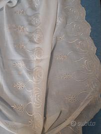 n. 3 Tende color beige chiaro con ricami su tela ed altri traforati. Molto eleganti con passanti, no occhielli. Tessuto 100% poliestere, leggero e liscio. Ogni tenda ha le seguenti misure: passanti cm. 5 x 10 + 270 cm. lunghezza solo tenda = 280 x 140 cm.di larghezza. Lavate. Ottimo stato. Faccio buon prezzo perché non le posso più usare in quanto mi servono più lunghe causa sostituzione serramenti e cassonetti.
