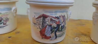 set di n. 4 barattoli di ceramica manifattura francese h 14 cm - diametro 11 cm dipinti con scene campestri