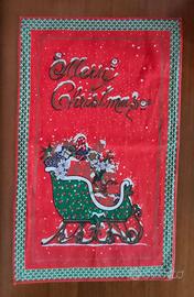 - Asciugapiatti rosso con scritte Merry Christmas e decorazioni, misure 69 x 43 cm