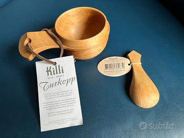 Tazza da caffè in legno artigianale scandinava KILLI (Norvegia) con cucchiaino in legno ENETRÄ (Svezia).