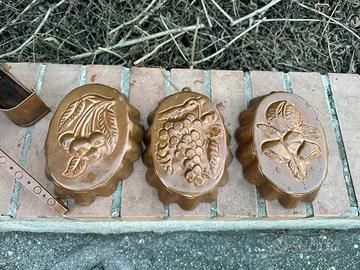 Set di oggetti decorativi in rame lavorato, stile vintage/antico. Comprende: