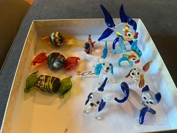 Vendo un raffinato set di miniature in vetro di Murano, interamente realizzato a mano. Ogni oggetto è un piccolo capolavoro artigianale, con colori brillanti e lavorazione artistica tipica del vetro veneziano. Il set comprende: