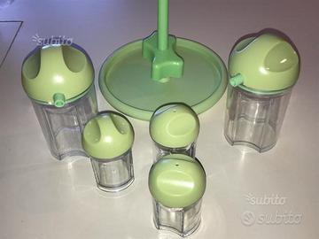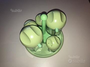 Vendo per inutilizzo set da tavolo nuovo nel suo imballo porta olio, aceto, sale, pepe e stuzzicadenti. In materiale plastico, leggero ottimo anche per campeggio e camper.