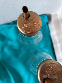 Tappi color oro (con una leggera patina dovuta al tenpo) con beccuccio versatore e guarnizione in plastica.