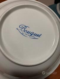 Composto da una insalatiera in ceramica decorata con motivi floreali Linea Bouquet E un set per condimenti abbinati con il loro vassoio in vimini
