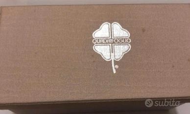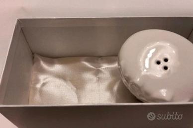 Set olio aceto sale pepe in ceramica, con scatola regalo. Arrivano in due scatole distinte. L'euro è stato fotografato per potersi regolare sulla grandezza dell'oggetto.