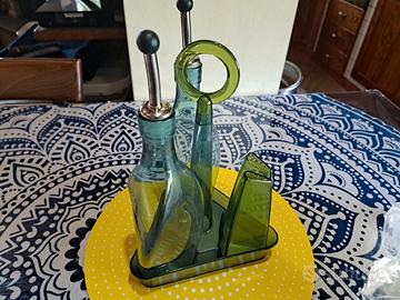 Set da tavola olio e aceto, elegante Tupperwere. Di colore verde , con contenitori sale e pepe. Nuovo con doppi tappi nero e bianco come da foto.