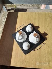 Vendo elegante set da tavola per condimenti, ideale per dare un tocco di stile alla tua cucina o al tuo tavolo da pranzo. Il set è composto da: