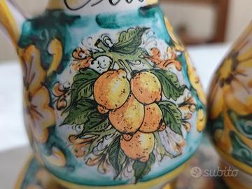 set olio e aceto di santo Stefano di Camastra pitturate con piattino nuovo senza cartellino mai usato.