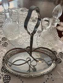 Ser olio e aceto in cristallo su base in acciao Prodotto vintage