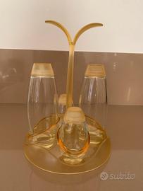 Elegante set per condimento Guzzini color ocra trasparente plastica e vetro olio aceto pepe sale